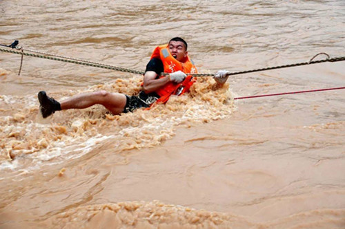 我國解放軍在搶險(xiǎn)前線