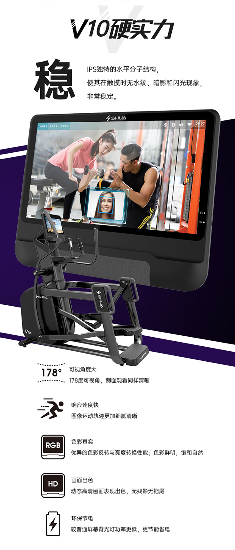 舒華高端跑步機(jī)SH-T9100T(V10+)擁有超大高清32寸10點(diǎn)觸控晶屏的工業(yè)屏,具有掃碼、刷卡、人臉識(shí)別等多種智能登錄方式,方便快捷,并且有在線(xiàn)教學(xué)、專(zhuān)業(yè)健身模式隨意切換,讓您開(kāi)啟科學(xué)健身。