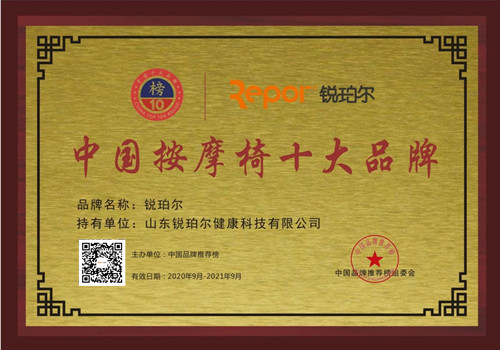 銳珀?duì)柊茨σ?/a>在2020年被評為中國按摩椅十大品牌之一